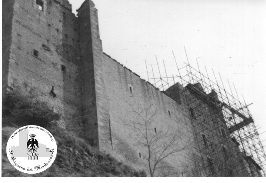 Gli anni '50 e '60 sono quelli che vedono il maggiore stato di abbandono e degrado del Castello. Una fotografia del 1957 mostra ancora il merlo supertite a lato della torre, ancora molto alto. Sulla parte superstite del Palazzo Feudale (quella un tempo chiamata palazzo nuovo), crolla il tetto. Il Castello è infestato dalla vegetazione e dai rampicanti che infestano sempre più le sue mura, provocando crolli su crolli. Nel 1961 il Comune acquista la Rocca, si apre allora, nella tenebra, un barlume di speranza per il recupero del Castello di Raimondo che all'epoca sembrava perduto per sempre!