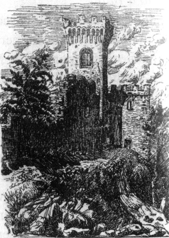 Il Castello di Montecuccolo come appariva prima del crollo del palazzo feudale in un incisione da “Montecucolo, Bozzetto storico descrittivo”di P.B. Casoli 1878.