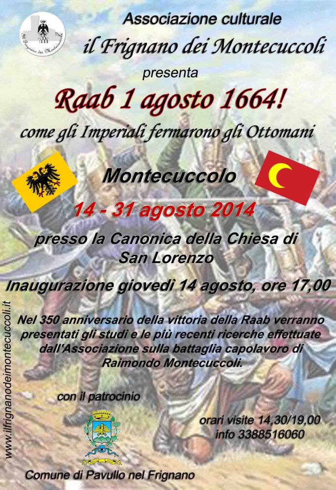 Di seguito la proiezione di un animazione prodotta in Ungheria sulla battaglia della Raab, commentata e spiegata da Roberto Amadori, già autore assieme a Paolo Rodolfo Carraro e Alessio Bononcini, del primo libro italiano sulla battaglia della Raab: “Montecuccoli a difesa dell’Impero – San Gottardo 1 agosto 1664” - chilledimi editore 2015.