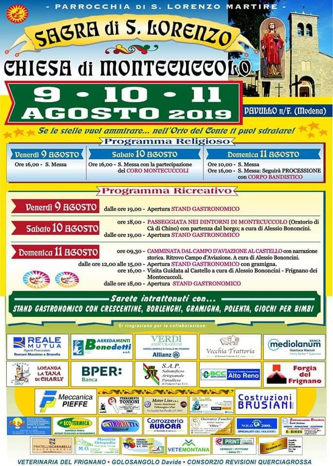 In occasione dell'esposizione della croce-bandiera all'interno della chiesa di S. Lorenzo in Montecuccolo, abbiamo realizzato la descrizione della croce stessa ed esposto due pannelli con foto d'epoca del borgo, tratte dall'archivio fotografico che padre Berardo Rossi ci donò, ed un pannello dedicato a don Cesare Adani, uno dei più longevi parroci di Montecuccolo.